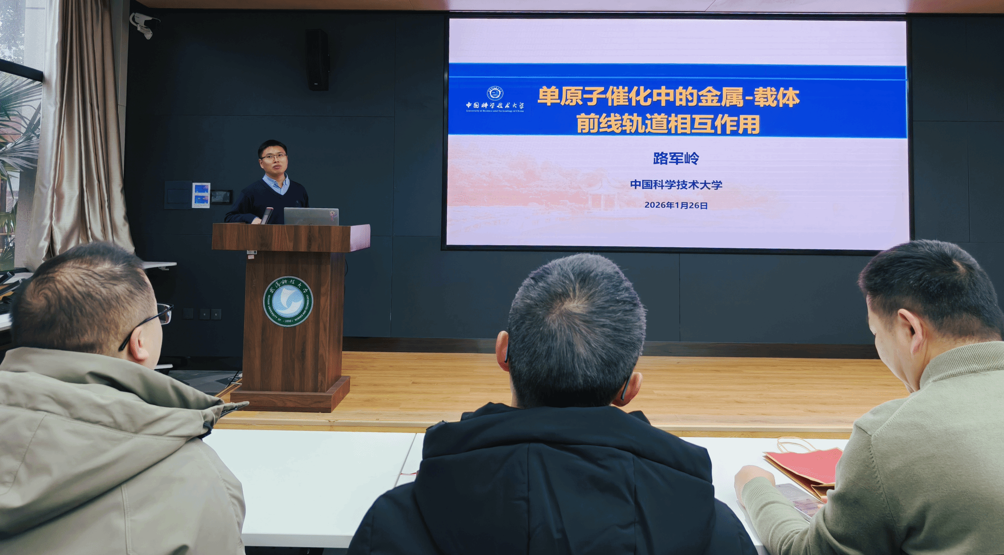 报告中,路军岭提出了单原子催化剂设计的新理论模型,创新地将前线分子轨道(FMO)理论引入该领域,将载体视为金属原子的“配体”,通过调控载体优化金属-载体轨道耦合,为同时提升催化剂活性和稳定性提供了理论指导。随后,他介绍了基于原子层沉积(ALD)的金属-氧化物界面原子精准设计及双界面催化剂的最新进展。报告内容新颖,引发了在场师生的热烈讨论,路军岭结合专业知识逐一交流解答。