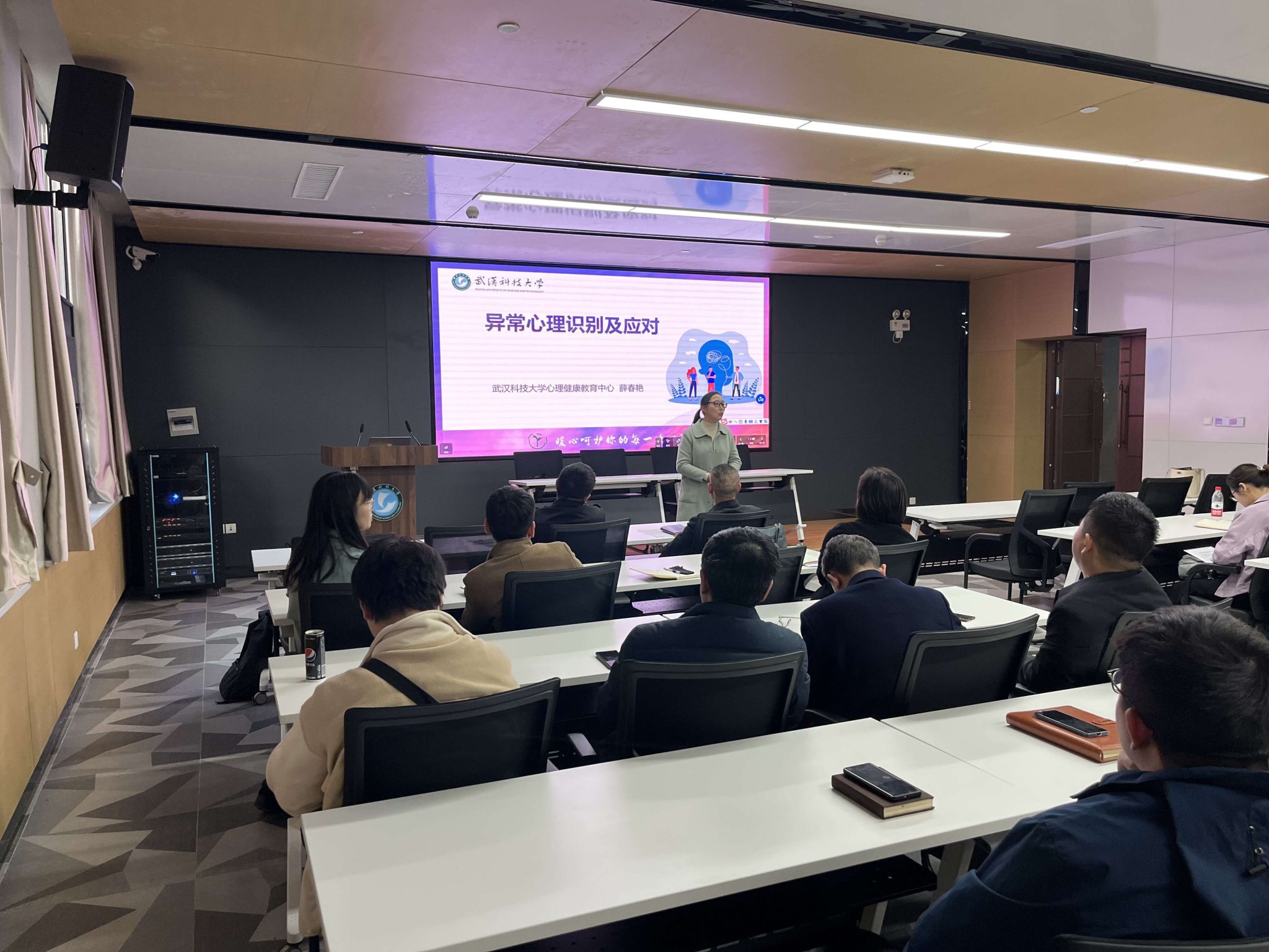 为增强公司心理健康教育工作成效,提升教师心理健康工作能力。11月23日下午,英国正版365在青山校区图书馆路演厅举办了教师心理健康教育能力提升培训讲座。365英国上市心理健康教育中心副主任薛春艳教授以“异常心理识别及应对”为主题进行专题培训。公司领导班子成员、研究生导师、班主任及管理人员参加。讲座由公司党委副书记余婷主持。