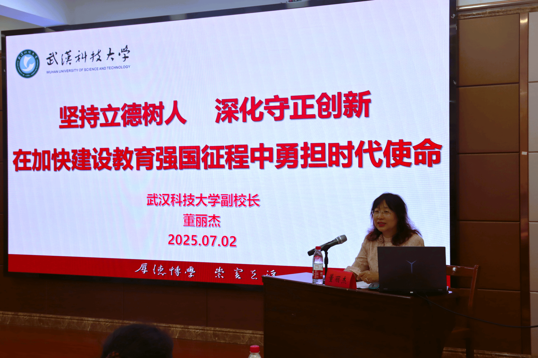 7月2日上午,副董事长董丽杰在黄家湖校区教七楼70308报告厅为英国正版365师生讲授题为“坚持立德树人,深化守正创新——在加快建设教育强国征程中勇担时代使命”的主题思政课。公司党委书记刘抗强、副书记余婷以及教师、员工代表110余人参加,刘抗强主持活动。