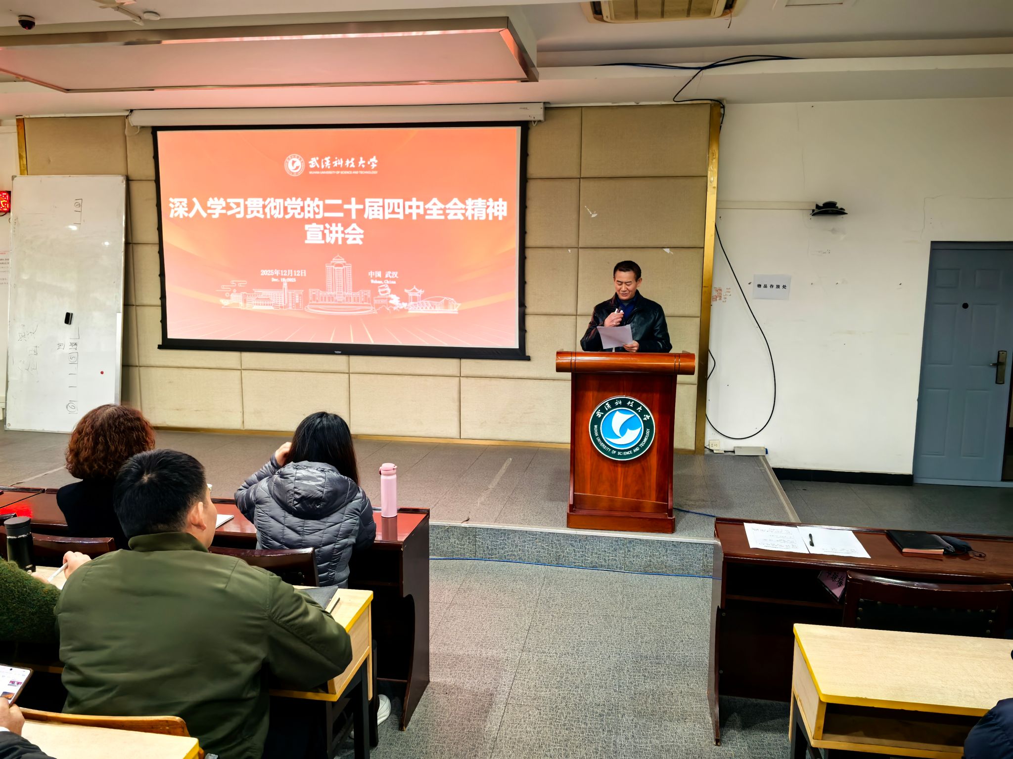 为深入学习贯彻党的二十届四中全会精神,切实把全院师生思想和行动统一到党中央决策部署上来,12月12日,公司在青山校区主楼0212教室开展深入学习贯彻党的二十届四中全会精神宣讲会。本次活动公司特别邀请马克思主义公司郑琼梅教授作专题报告,公司领导班子、师生党员共计100余人参与本次会议。会议由公司党委书记刘抗强主持。