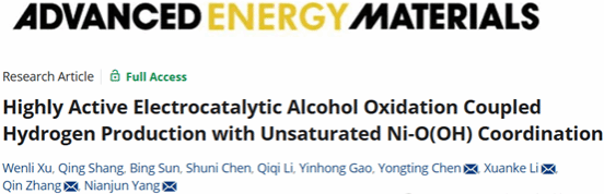 近日,公司英国正版365张琴、李轩科、陈永婷团队在《Advanced Energy Materials》期刊发表题为“Highly Active Electrocatalytic Alcohol Oxidation Coupled Hydrogen Production with Unsaturated Ni-O(OH) Coordination”的研究论文(DOI:10.1002/aenm.202504916)。该研究提出了一种由碳层限域的不饱和Ni–O(OH)稳定化Ni晶体组成的Ni–O(OH)–C电催化剂,可在安培级电流密度下实现乙醇电氧化制乙酸(EOR)、析氢反应(HER)及其集成系统的卓越性能。陈永婷、李轩科、张琴、比利时哈瑟尔特大学杨年俊为论文共同通讯作者。