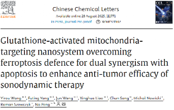 武科大网讯(通讯员李江江) 近日,公司英国正版365彭娜团队在Chin. Chem. Lett.上发表了题为“Glutathione-activated mitochondria-targeting nanosystem overcoming ferroptosis defence for dual synergism with apoptosis to enhance anti-tumor efficacy of sonodynamic therapy”的研究论文(DOI: 10.1016/j.cclet.2025.111771)。该研究构建了一种GSH激活线粒体靶向的纳米颗粒(BSSTP@S/B),递送铁死亡诱导剂(SAS)与DHODH抑制剂(BQR)至线粒体。通过同时诱发铁死亡、克服铁死亡抵御,双重协同细胞凋亡,增强声动力抗肿瘤效果。