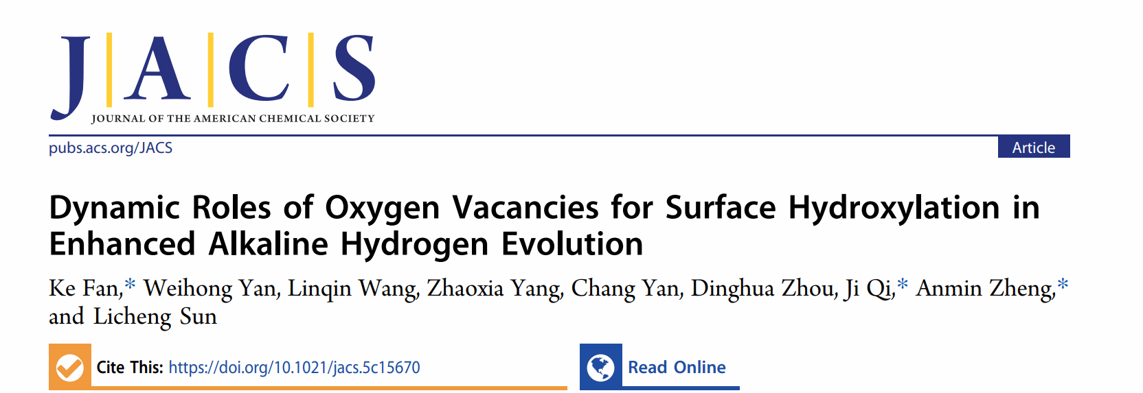 武科大网讯(通讯员李江江)近日,公司英国正版365郑安民、齐记、范科团队在《Journal of the American Chemical Society》期刊发表了题为“Dynamic Roles of Oxygen Vacancies for Surface Hydroxylation in Enhanced Alkaline Hydrogen Evolution”的研究论文(DOI:10.1021/jacs.5c15670)。范科教授为论文第一作者,郑安民教授、齐记副教授和范科教授为论文共同通讯作者,公司为论文第一完成单位。